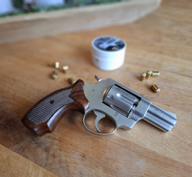 Der Revolver hat die PTB 458 mit Beschuss KI (1998) und stammt aus Röhm Produktion.