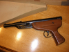 Ungewöhnlich bei dieser Pistole ist das überhöhte Griffstück, so dass sie bei einigen Sammlern schon als „Unikum“ bezeichnet wird. Die Gestaltung des Laufes und der Laufarretierung lassen Ähnlichkeiten mit den Knaben-Luftgewehren DIANA 15 und DIANA 16 erkennen. Da die Läufe dieser Pistolen mit ca. 13 cm aber recht kurz sind, ist der Spannvorgang (auch durch das Perlkorn ) nicht angenehm. Die Kimme ist höhenverstellbar. Positiv einzuschätzen ist aber die Schussleistung. Der Lauf dieser Pistole ist gezogen. Innerhalb der Verpackung wurde wohl das Kaufdatum eingeschrieben (3.3.64).