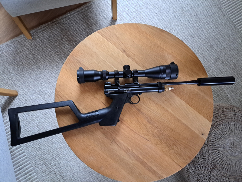 Einmalige Gelegenheit: verkaufe eine Crosman 2300 im Kaliber 4,5mm als Carbine mit Anschlagschaft und Adapter für den Betrieb mit Pressluft.