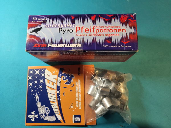 Sie kaufen 50 Pfeifpatronen mit Silberkomet, sowie 20 Stück Superblinkersterne