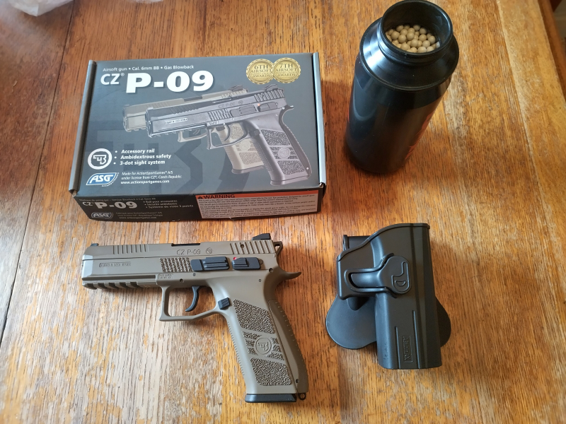 Die CZ P-09 GBB Pistole verfügt über einen sehr detaillierten Kunststoff-Schlitten, welcher mit sauberen CZ Markings versehen ist. Der Blowback Effekt dieses Modells ist knackig und kraftvoll, man merkt sofort, dass es sich hierbei um eine wirklich professionelle Airsoftwaffe handelt. Der Kunststoff Outer Barrel trägt wesentlich zu dem angenehmen Gesamtgewicht von knapp 1kg bei. Der Lauf beherbergt selbstverständlich das einstellbare Hopup, welches sich sehr präzise einstellen lässt.