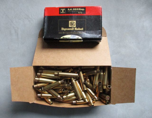 Seltene Hülsen. Ich biete für Wiederlader gut 100 gebrauchte Hülsen Kaliber 5,6x50R Mag, Hersteller RWS, wie abgebidet. Die Hülsen sind alle 1x geschossen, nicht wiedergeladen, nicht gereinigt, nicht bearbeitet und sehr gut erhalten.