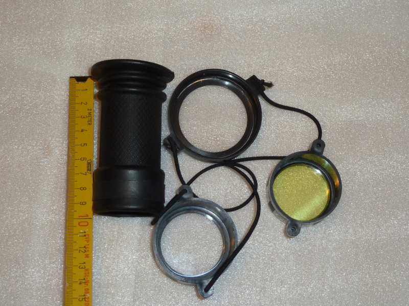 Hier biete ich eine Gummiblende für ein Zielfernrohr, eine Gelbfilterkappe und zwei Staubschutzkappen zum Kauf an.