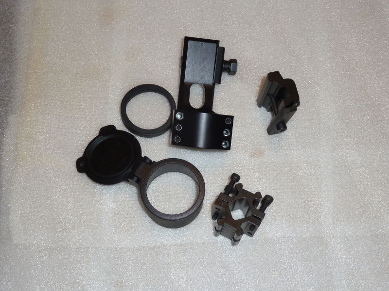 Hier biete ich fünf Zielfernrohrmontageteile an, von welchen ich leider nicht mehr weiß wofür sie einmal gedacht waren.
