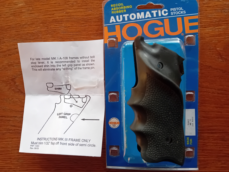 Ich verkaufe eine nicht mehr benötigte, gebrauchte, aber sehr gut (absolut neuwertig) erhaltene Hogue-Gummi-Griffschale mit Daumenauflage an der linken Waffenseite (Rechtshandschützen) für eine Ruger Mark II Target .22LR Sportpistole (siehe Fotos). Meine Waffe ist wegen Aufgabe des Schießsports bereits verkauft und insofern wird die sehr gute, griffige Gummi-Griffschale nun ebenfalls verkauft. Artikel in der OVP. Siehe auch Hinweise des Herstellers. Laut Beipackzettel kann diese Griffschale auch an die Ruger Mark I und Mark III montiert werden.