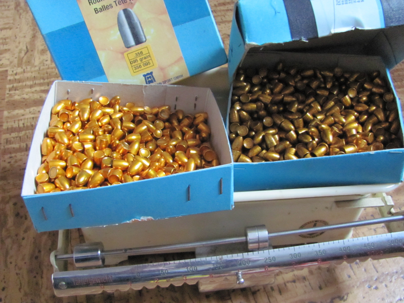 Sie bieten Geschosse von H&N. Die zwei Schachteln, zusammen, 5,2KG. 95 Grain. Müsste so gerechnet etwa 840 STück sein (Umrechnung nach Gewicht, nicht gezählt). Rundkopf, Durchmesser 356, Geht für 9 Para/ Luger und 380 Auto.