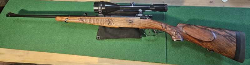Der Schaft wurde von einem Büchsenmachermeister professionell aufgearbeitet. Zusätzlich wurde von der Schäfterei Zachmeier aus der Oberpfalz eine griffige Schuppenfischhaut eingearbeitet.