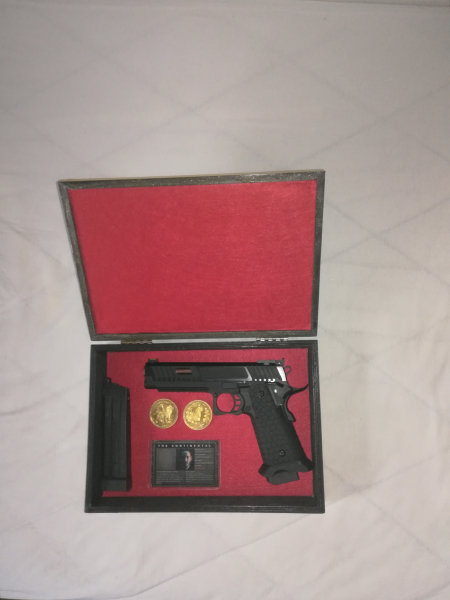 selbstgebaute Box, 2x JW Goldmünzen, 1x"Filmausweis"