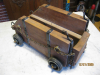 Eine Lafette für den Kanonenbau oder als Kinder-Spielzeug. Holz unbekannt, aber schwer. Holzdicke 35mm, Länge 46cm, Breite ohne Räder 21cm, Gesamt-Breite 29cm, Höhe 21cm, Gewicht 6,2 Kg. Gebrauchtware, keine Garantie, kein Umtausch.