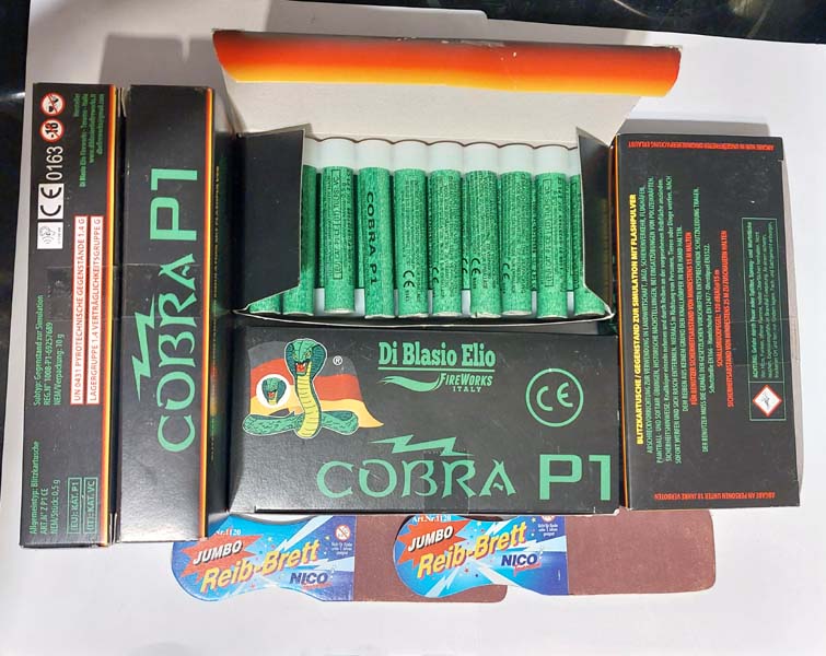 Biete hier ein Konvolut von 5 Pack Cabra P1 Schallerzeuger vom Premium Hersteller Di Blasio- Mittlerweile selten zu bekommen da oft ausverkauft. Ganzjährig ab 18 zu erwerben. Achtung: KEIN Silvesterfeuerwerk, daher erlaubten Verwendungszweck beachten. sie kaufen 5 Pack also 100 Stück pro Gebot, ohne das reibebrett