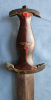 SA-Dolch H&F Lauterjung, Solingen ohne Scheide. Gebietsgruppenstempel Om für Ostmark. Die Parierstangen sind zum großen Teil schwarz, denke mal das es Farbe ist. Adler wurde so stark geputzt das er Kupferfarben ist. Griff mehrfach mit Ausbrüchen und Rissen. Pastille ist im einwandfreien Zustand und scheint mir Original drin zu sein.