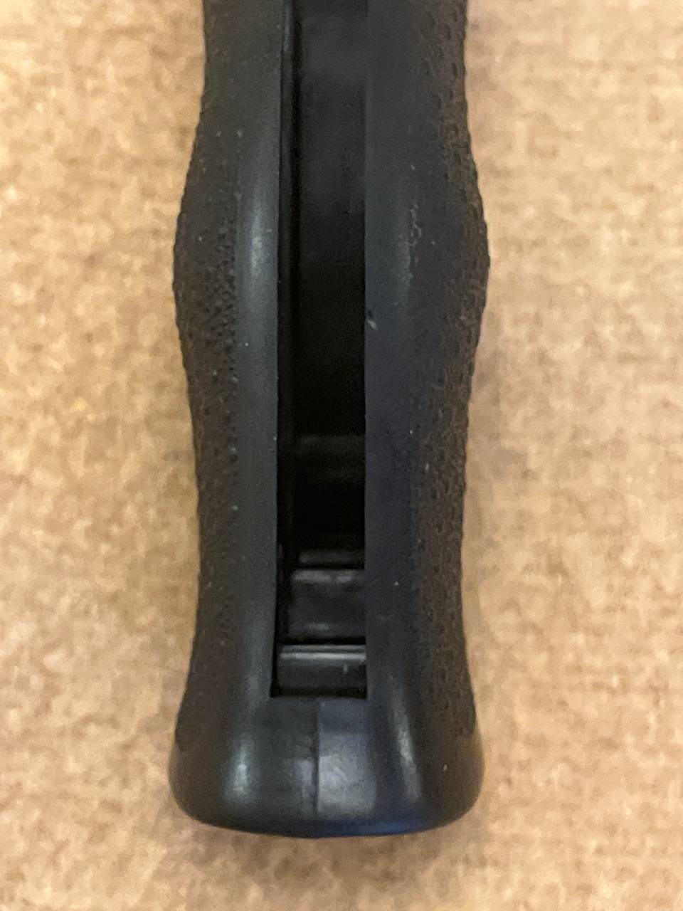 (siehe Beschreibung/Merkmale unten) angegeben wurde, allerdings ohne Angabe der Griffstücks- Art (SB oder RB). Erkennbar als SB (square butt) ist der griff allerdings von hinten, indem der "open back" tiefer ist