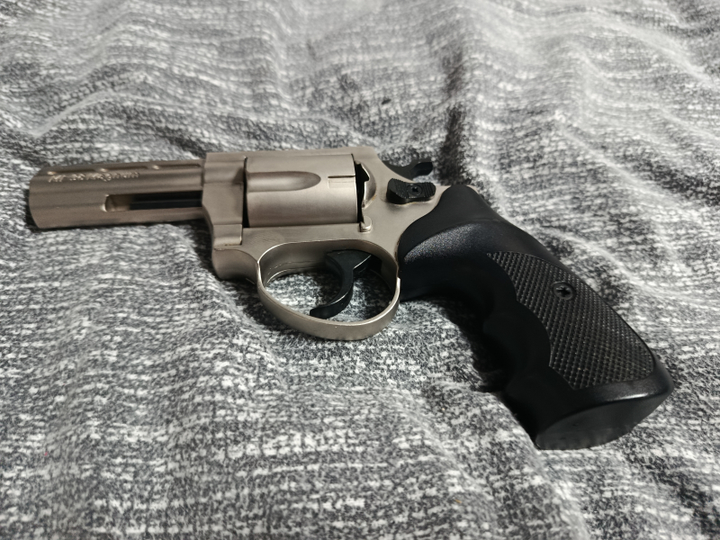 ME 38 Magnum Schreckschussrevolver im Kaliber 9mm mit einer 5 Schuss Trommelin der vernickelten Ausführung. Frei ab 18 Jahren.