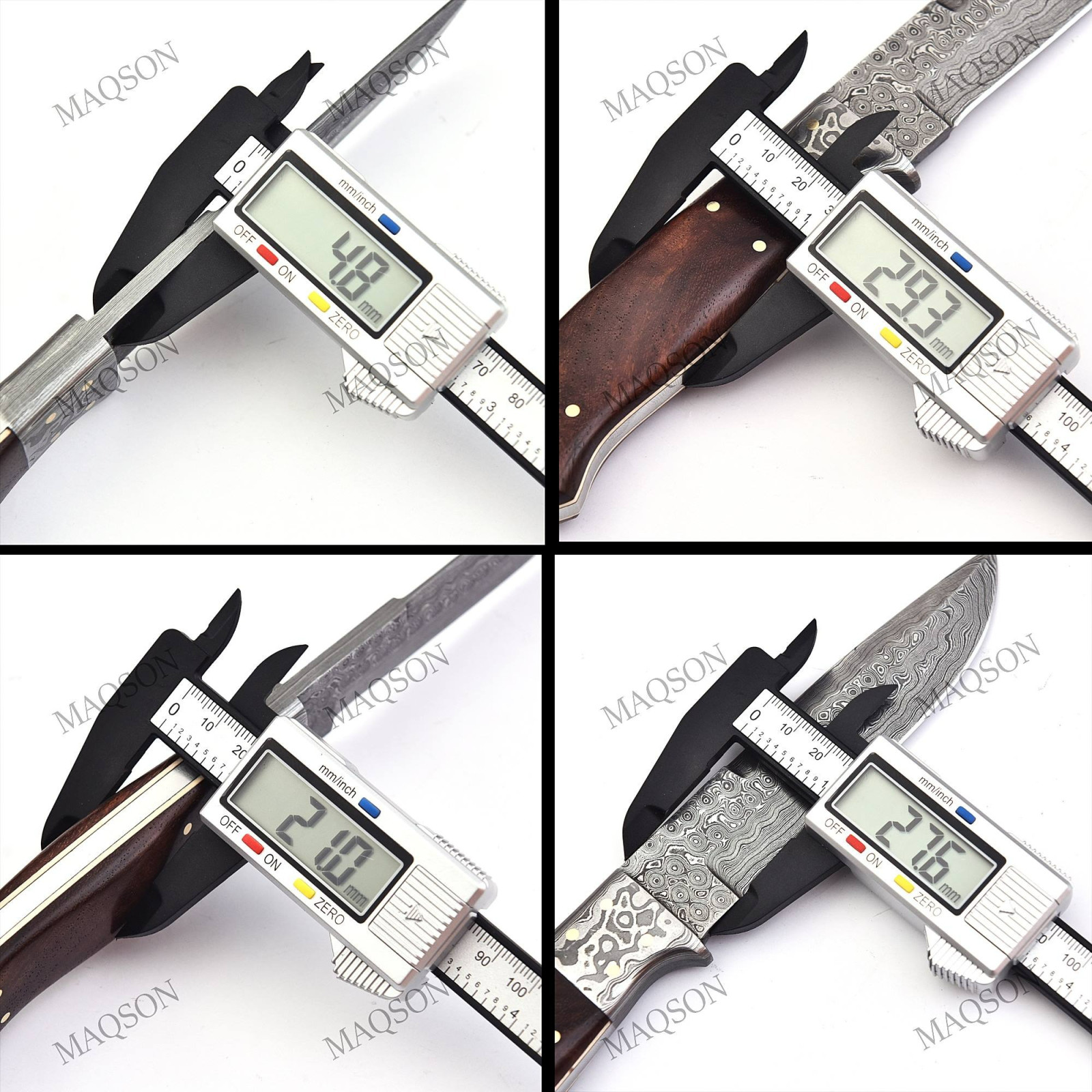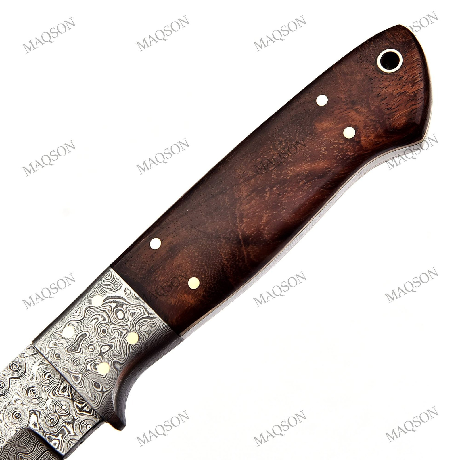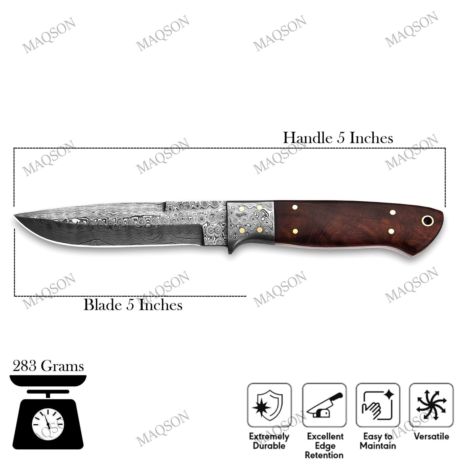Die Klinge besteht aus echtem Damaststahl, geschmiedet aus den hochwertigen Stahlsorten 1095 & 15N20 – fünfmal gefaltet, was zu insgesamt 288 Lagen führt. Das ergibt eine besonders feine Maserung und sorgt für: