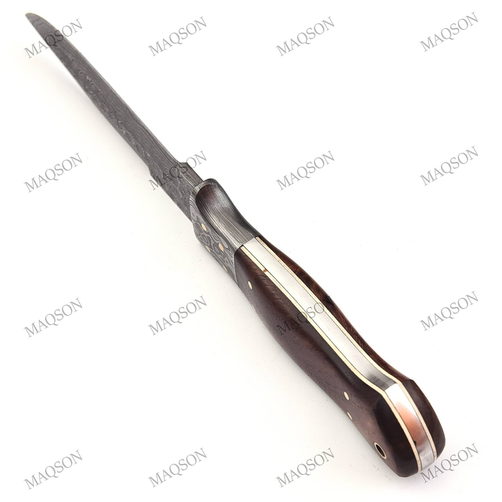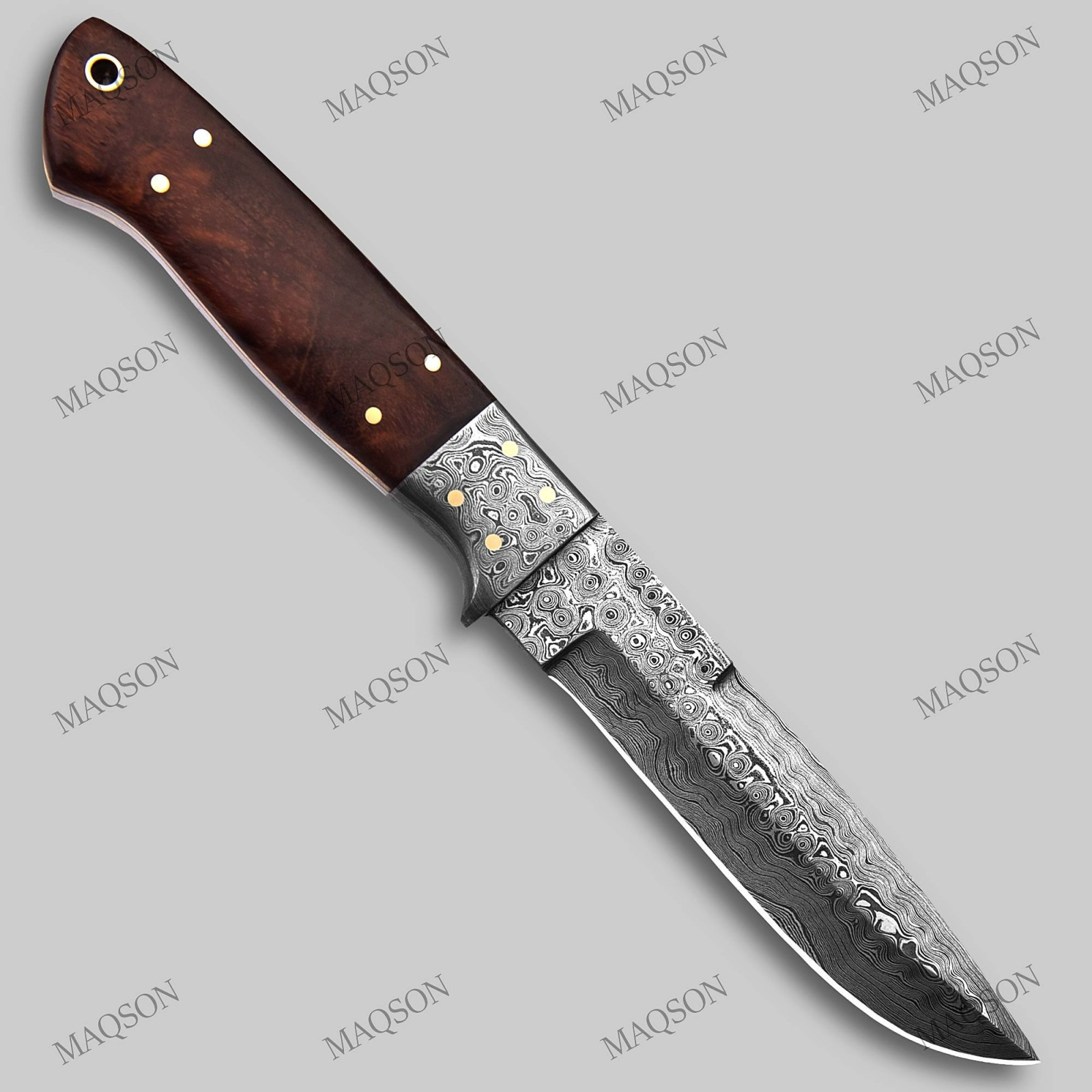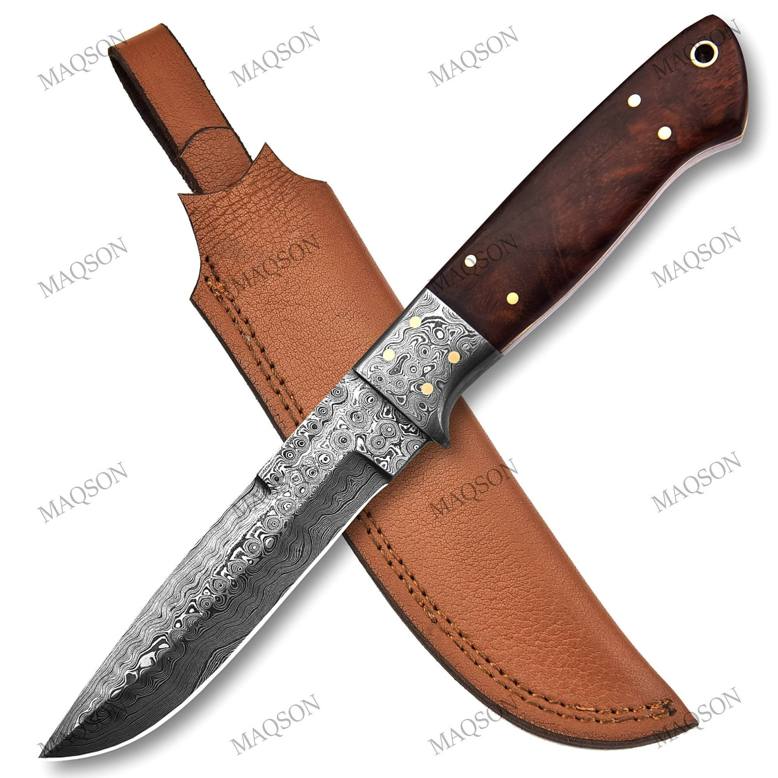 Die Klinge besteht aus echtem Damaststahl, geschmiedet aus den hochwertigen Stahlsorten 1095 & 15N20 – fünfmal gefaltet, was zu insgesamt 288 Lagen führt. Das ergibt eine besonders feine Maserung und sorgt für: