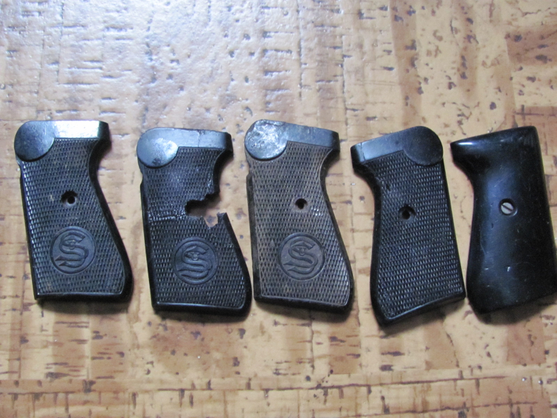 sie bieten auf ein Konvolut von Griffschalen für die Sauer und Sohn Modell 38, alle mehr oder weniger defekt. Eine sieht auch selbst gemacht aus.