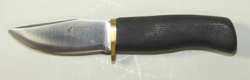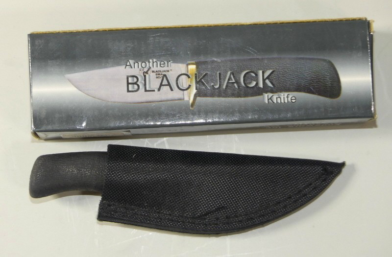 Neues Black Jack "Small" Messer inkl Scheide mit Gürtelschlaufe und Originalverpackung. Dieses Modell dürfte seit längerer Zeit nicht mehr im Handel erhältlich sein. Es handelt sich hier um einen im Lager "vergessenen" Restposten. Gummierter Handgriff. Klingenlänge ca 8 cm, Gesamtlänge: ca 17 cm. Informationen zu Ihren Verbraucherrechten etc finden Sie unter "Mygun".