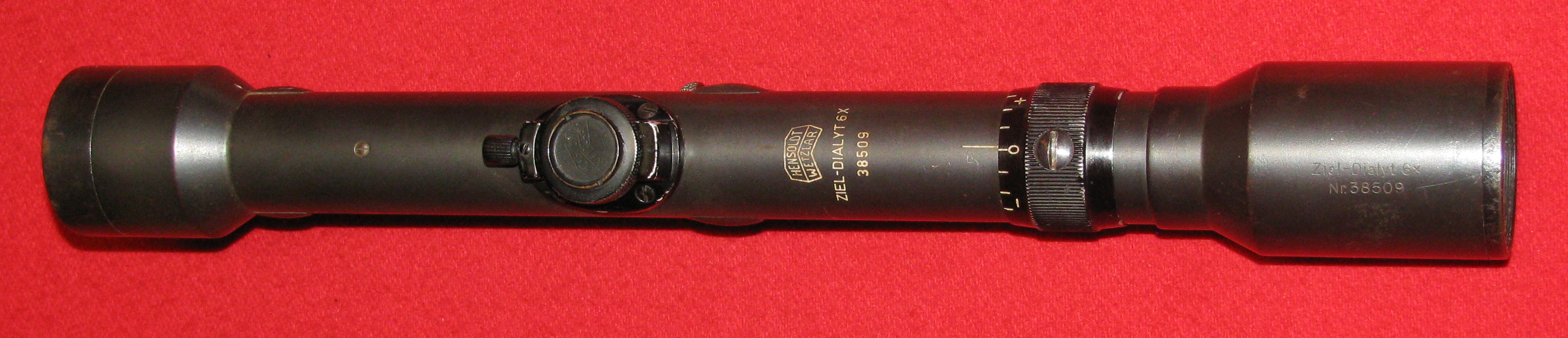 Zum Verkauf kommt ein seltenes ZF / Zielfernrohr / Stahlglas, ein HENSOLDT WETZLAR ZIEL - DIALYT 6x !, mit dem Absehen 1 und der Nummer 38509