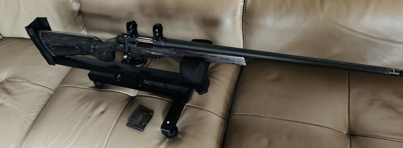 Die Büchse hat die üblichen Gebrauchsspuren. Der Lauf hat ein M15-1-Gewinde zur Montage von Schalldämpfern, auf dem momentan ein M15-1 auf M14-1 Adapter der Firma Beyer montiert ist (leicht verkratzt, siehe Fotos aber voll funktionsfähig). Dieser wir verbaut mitgeliefert.
