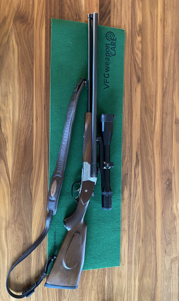 Zum Verkauf steht ein Krieghoff Trumpf Drilling im Kaliber 7x65R sowie 12/70 mit Zeiss Diavari ZM 2,5-10x48 T* Absehen 4. Der Drilling wurde 2018 aufwändig auf moderne Dreh-Schwenk Montage umgerüstet. Diese ist Spannungsfrei und verbindet das hochwertige Zielfernrohr perfekt und präzise mit der Waffe.
