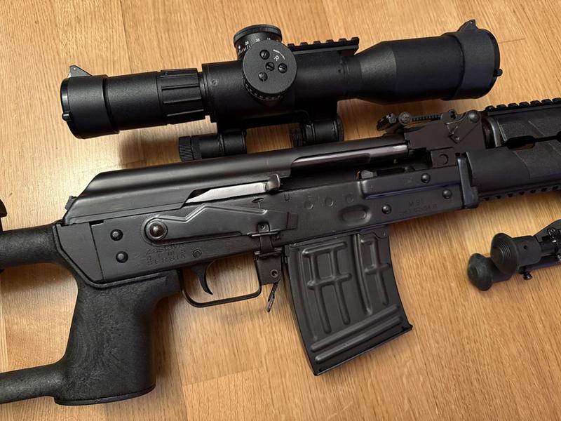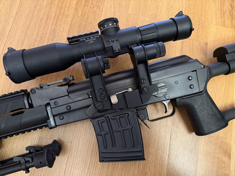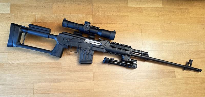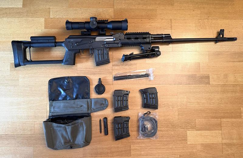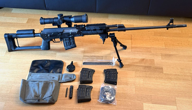 Eine seltene Zastava M91, auch bekannt als „Serbische Dragunov SVD“. Kaliber 7,62×54R, schwerer Lauf, mit einem POSP 8×42DU Zielfernrohr.