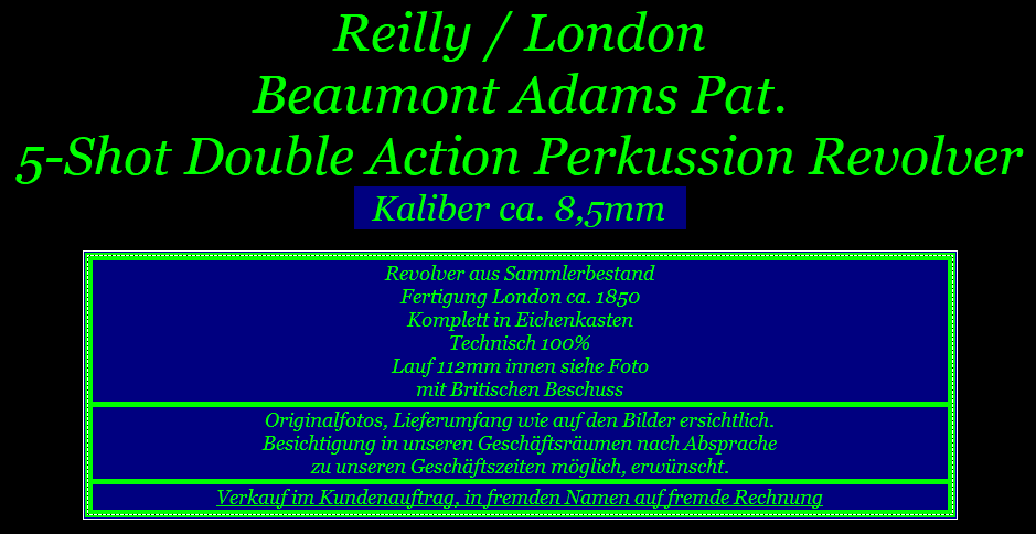 A Fine Cased 120-Bore Beaumont-Adams Patent Five-Shot Double-Action Percussion Revolver Retailed By Reilly, 502 Oxford St, London, No. B.19, 897 And 35646.R, Circa 1850
