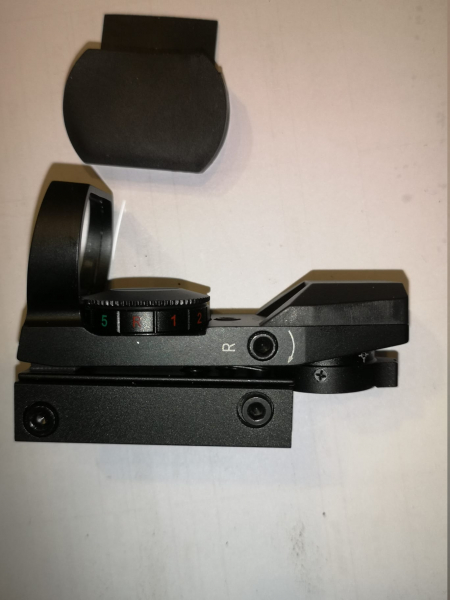 4 verschiedene Absehen, Absehen in Rot oder Grün mit 4 Helligkeitsstufen, Batterie von oben ohne Demontage zu wechseln