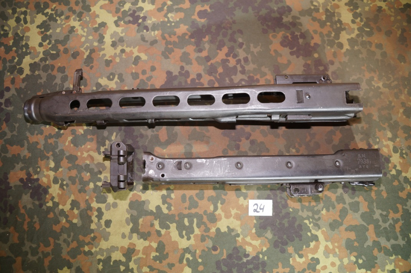 Achtung, aufgepasst: Sie bieten hier auf eine echte Rarität, ein original MG42 DEKO Gehäuse. Das Gehäuse ist mit dem Herstellerkürzel "svq" gestempelt (Gustloff-Werke Suhl) und wohl aus später Kriegsproduktion und später im österreichischen Bundesheer (Fremdstempel "BH") weiterverwendet. Das vordere Visier Nachkrieg ergänzt. Direkt unter dem Kurvenstück zerschnitten, somit unbrauchbar! Zustand, siehe Fotos. Absolut selten gewordene Gelegenheit für Sammler auf ein zeitgenössisches Original. Freies Ersatzteil ohne waffenrechtliche Eigenschaften! Versandkosten innerhalb Deutschlands 10 Euro, Versand ins EU-Ausland 22 Euro. Beschreibung nach bestem Wissen und Gewissen. Privatverkauf!