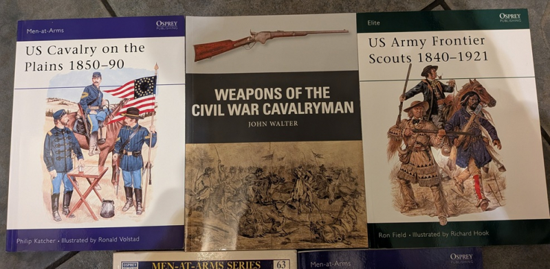 verkaufe: Konvolut aus 5 seltenen Heften zur US Cavalry von OSPREY/MEN-AT-ARMS Serie und ein Buch "WEAPONS OF THE CIVIL WAR CAVALRYMAN" von John Walter - Neupreis alles zusammen ca. 100 Euro - gebraucht mit leichten Spuren (Siehe Fotos!), zum Teil neuwertig