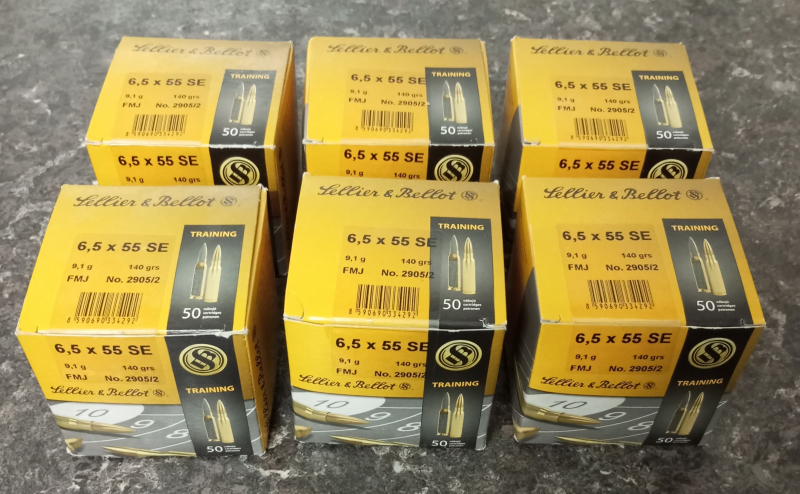 Verkaufe 300 Patronen 6,5x55 SE 9,1g 140 grs in 6 ungeöffneten Schachteln a 50 Schuss.