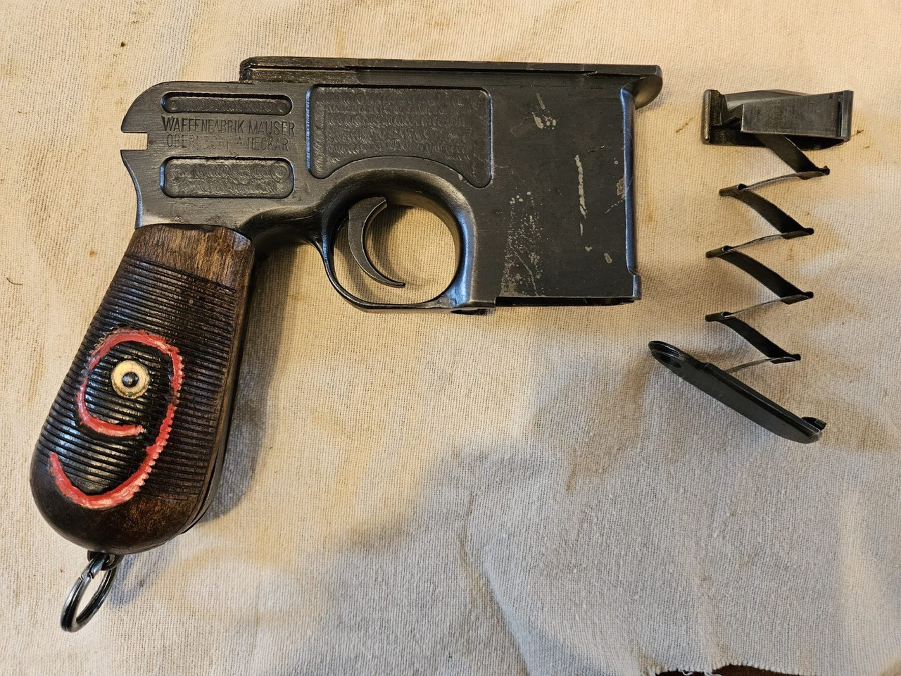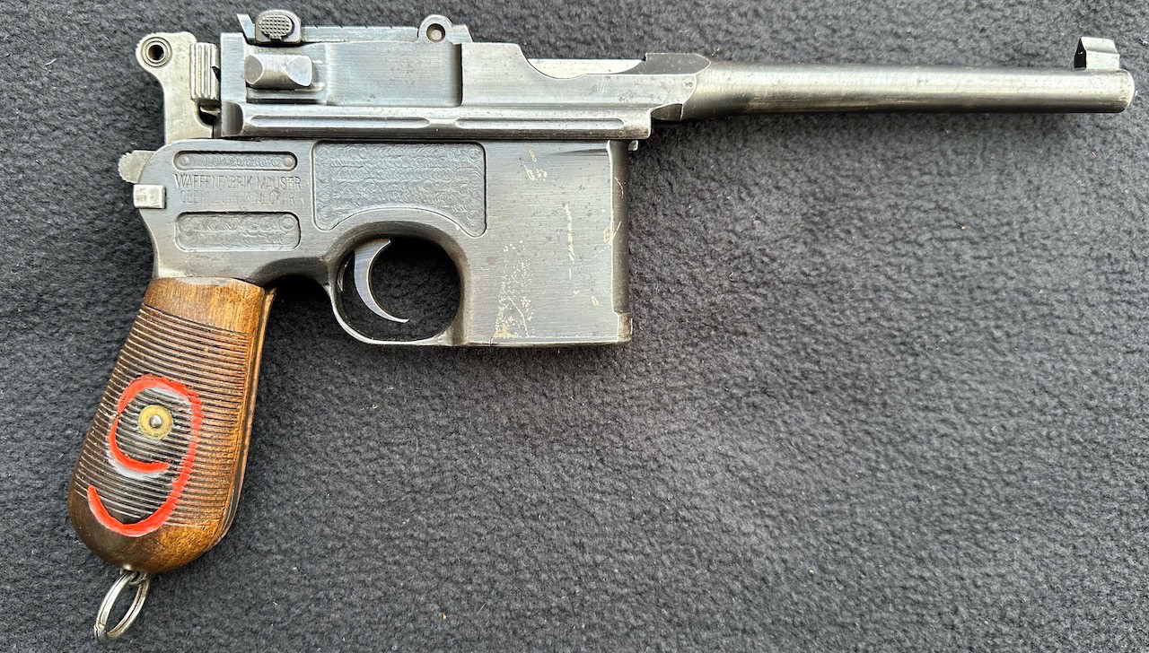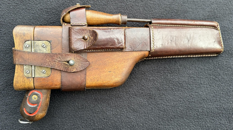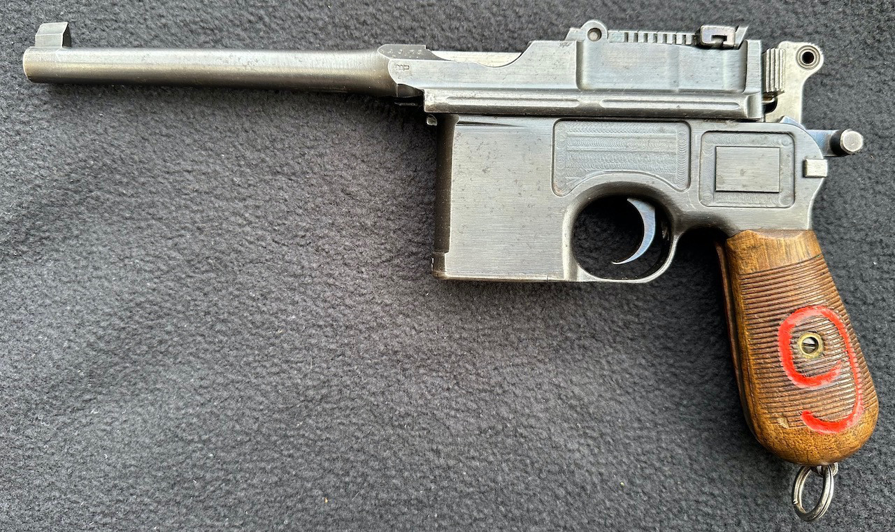 Pistole Mauser Modell C96 C 96 - Rote 9 - nummerngleich - inkl. Anschlagkasten - Belederrung