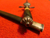 Hirschfänger wohl neu.Die ganze Montur wohl versilbert (läßt sich putzen !)Scheide fühlt sich an ,wie Hartplast.Trotzdem schönes Stück.kein Hersteller.