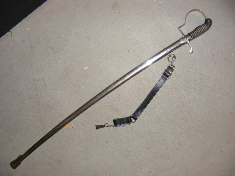 Preußischer Säbel, ohne Herstellermarken, Länge 95 cm, Trageriemen mit Kette.