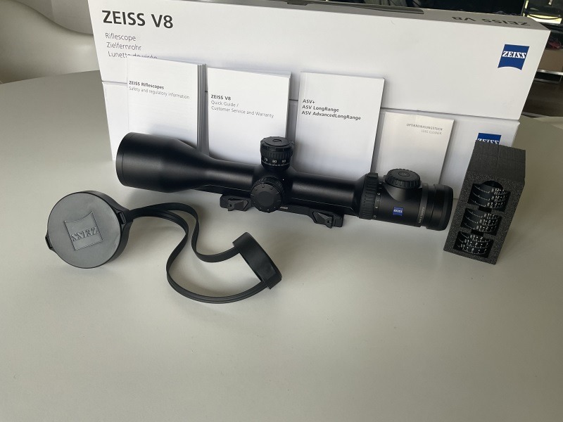 Zeiss V8 2,8-20x56 M mit Schiene und ASV für die Höhe. Aktuelles Modell mit 30mm Tubus und Leuchtabsehen 60. Das Glas wurde von mir in 04/2025 im Frankonia neu gekauft und nur seltenst geführt. Die Rechnung gibt selbstverständlich mit dazu, somit ist für eine lange ausreichende Garantie gesorgt. Top Zustand, absolut ohne Kratzer etc. Der Verkauf erfolgt wie auf den Bildern zu sehen in der Originalverpackung inklusive aller ASV Ringe mit allem was bei Neukauf mit dabei ist. Die abgebildete Innomount Montage ist Bestandteil dieser Auktion.