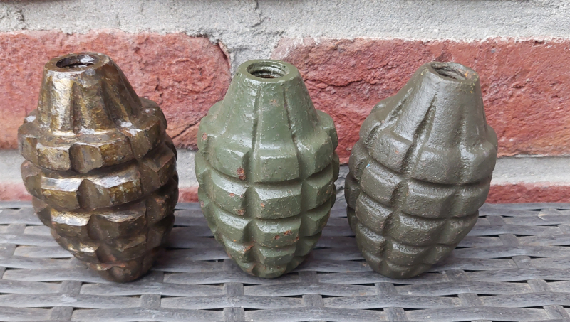 Biete hier 3 US Handgranatenkörper aus dem 2. Weltkrieg an. Weitere Details anhand des Bildes. Frei von Explosivstoffen und nach dem KWKG alles inert – kein Gefahrgut. Versand nur innerhalb der EU. Viel Spaß beim bieten.