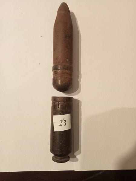 Sie bieten hier auf die abgebildete Patrone, eine MK 108 mit Ü-Geschoss. Das Geschoss hat eine Teerfüllung, eine Stahlhülse mit