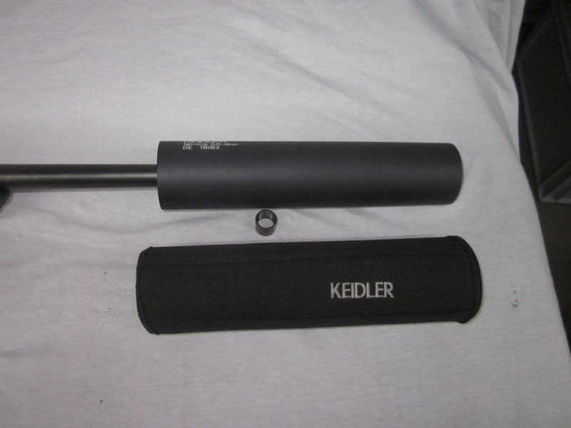 Der abgebildeten Schalldämpfer Keidler, 5,6-8mm, mit einem 15x1 Gewinde, inkl. Neoprenhülle kann für 295,00€ dazu erworben werden. Der Schalldämpfer absolut neuwertig.
