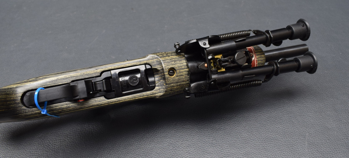 10-Schuss Trommelmagazin, Sicherung am Abzugbügel.