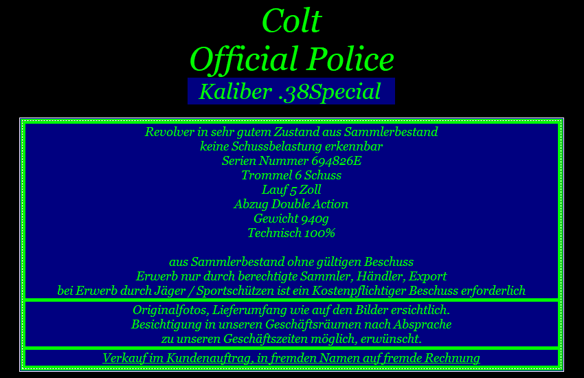 Artikel-ID: 20217961 ArtikelNr. des Verkäufers: 12094 Kategorie: Grosskaliber Kurzwaffen > Gebrauchsrevolver > Colt