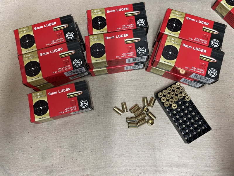 680 Stück Geco 9mm Luger mit Schachtel. 2x wiedergeladen gereinigt und entzündert.