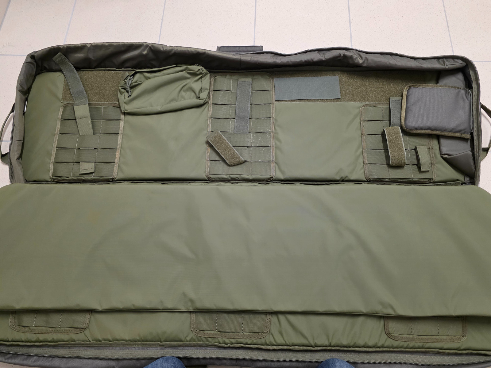 Diese Tasche hat sogar eine eingebaute Erweiterung bei Gewehren mit längeren Läufen.