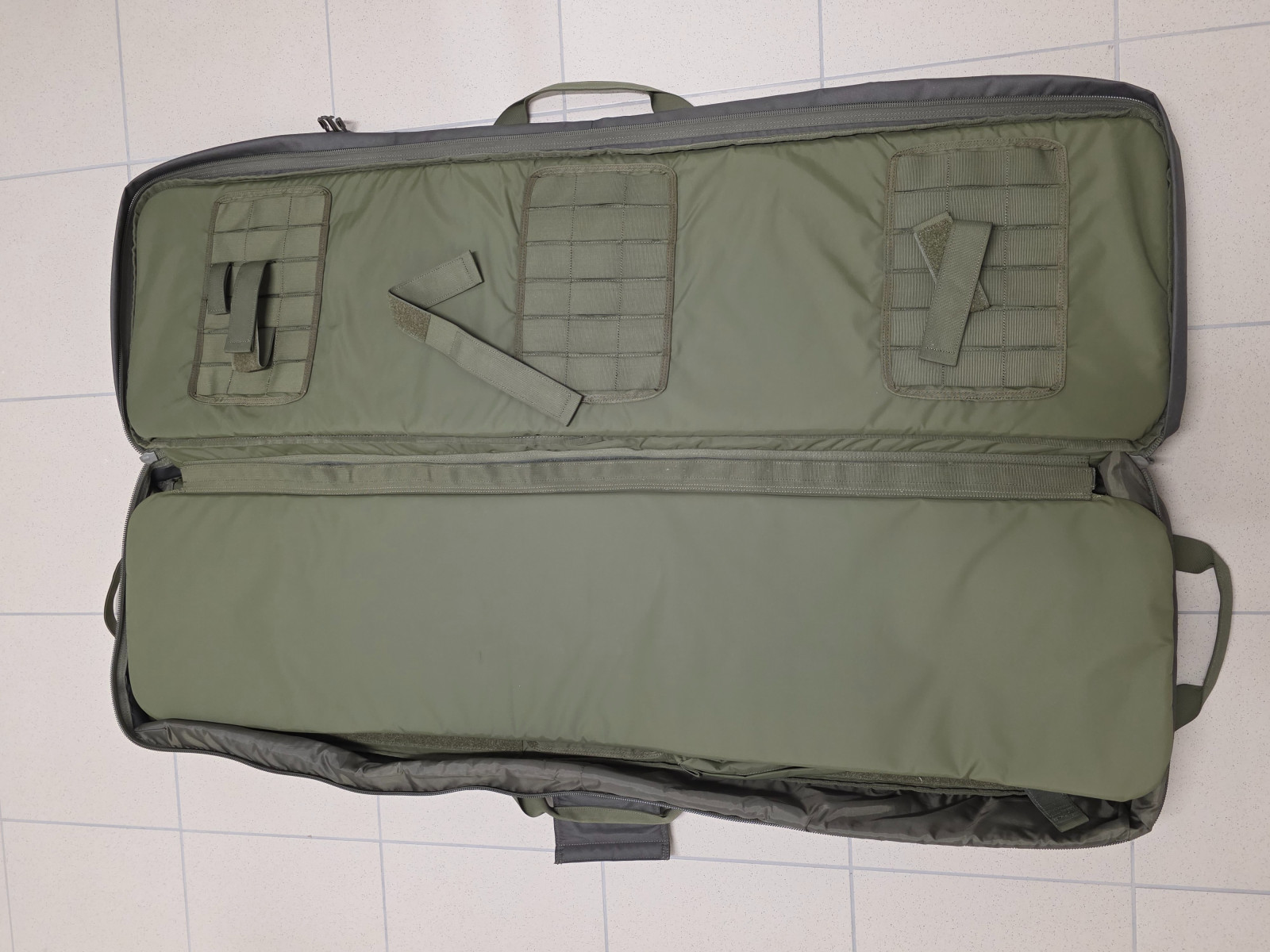 Sie bieten hier auf eine neuwertige Tasmanian Tiger "DBL Modular Rifle Bag" Gewehrtasche für zwei Langwaffen in der Farbe oliv.