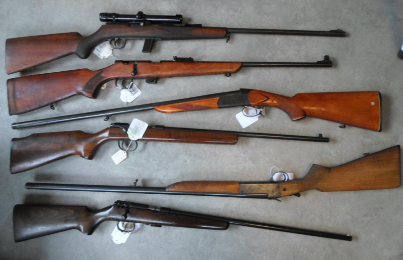 6 Kleinkalibergewehre und Einlaufflinten. Die Waffen sind alle funktionsfähig, werden aber aufgrund des Alters als defekt verkauft. Alle Gewehre mit gültigem Beschuß.