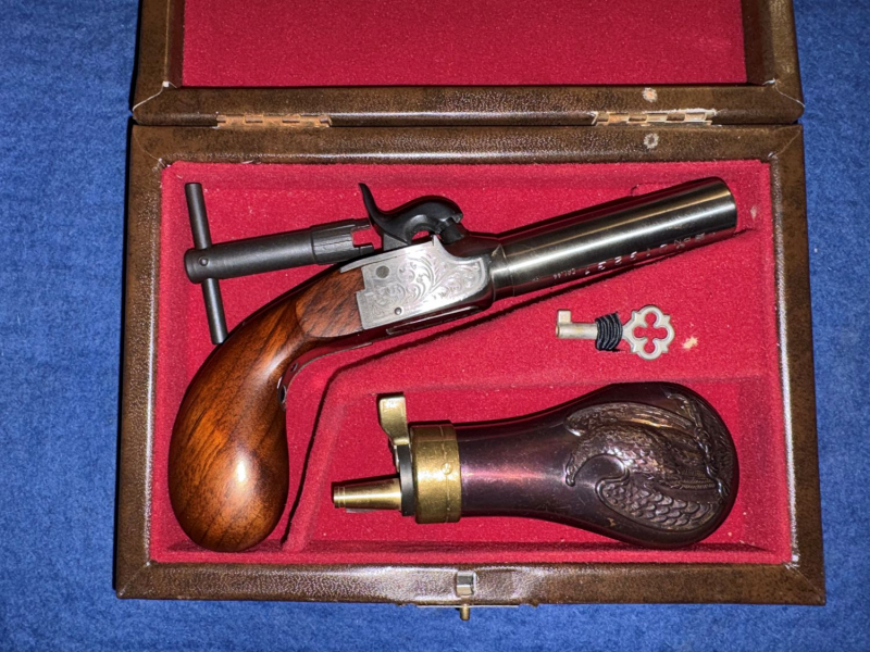Verkaufe einen einschüssigen Vorderlader-Derringer der Marke Pedersoli, Mod. Liegi Deluxe, Kal. 44.