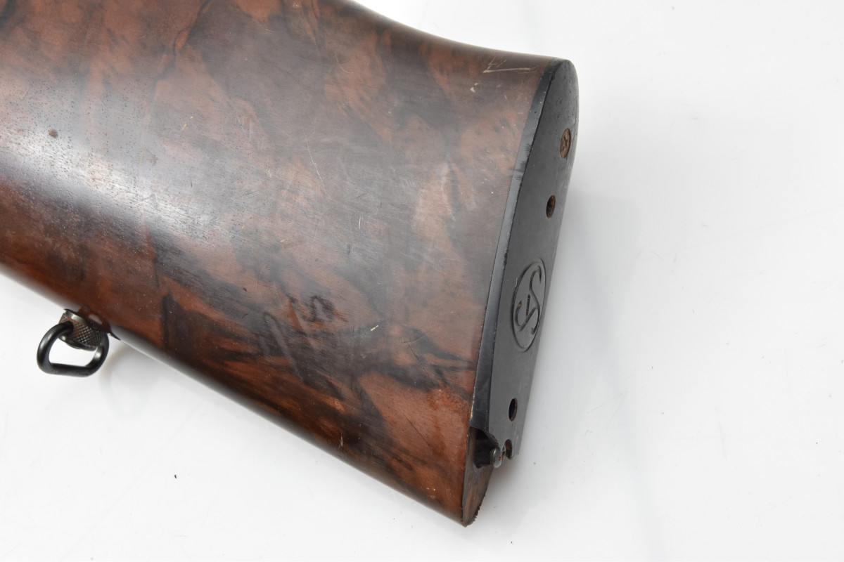 Die Waffe wurde jagdlich geführt und hat sichtbare oberflächliche Gebrauchsspuren (siehe Bilder). Die Kunststoffschaftkappe ist an der Schaftspitze weggebrochen, wodurch sich für den neuen Besitzer die ohnehin empfehlenswerte Anbringung einer Gummischaftkappe anbietet.