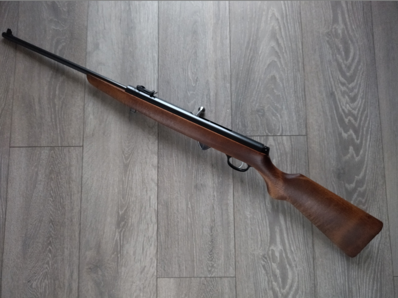 Mehrlader Luftgewehr, mit Stangenmagazin für 8 Rundkugeln im Kaliber 4.4 mm, Lauf gezogen, Einstellbarer Abzug, automatische Abzugssicherung, Länge 1080 mm, Gewicht ca. 3 Kg. Buchenholz Schaft.