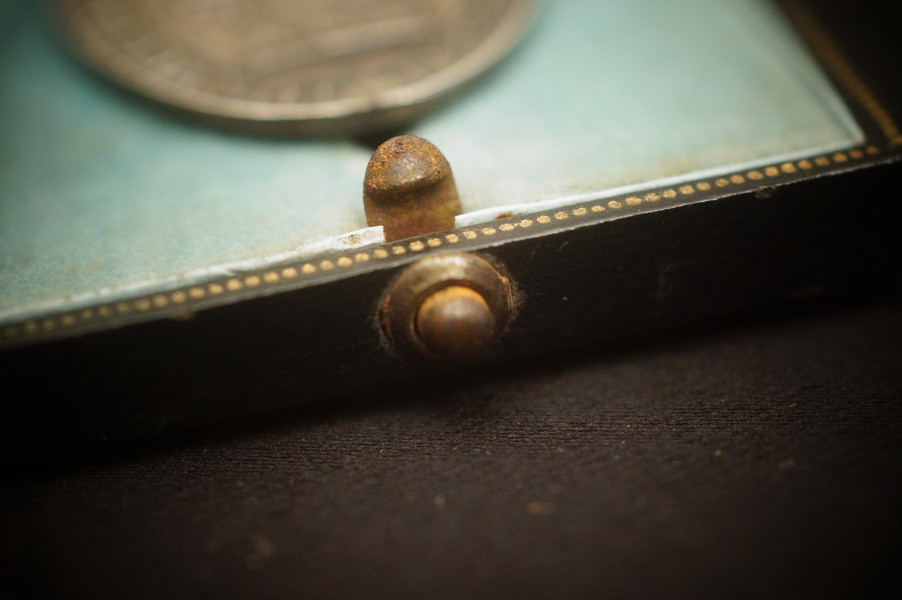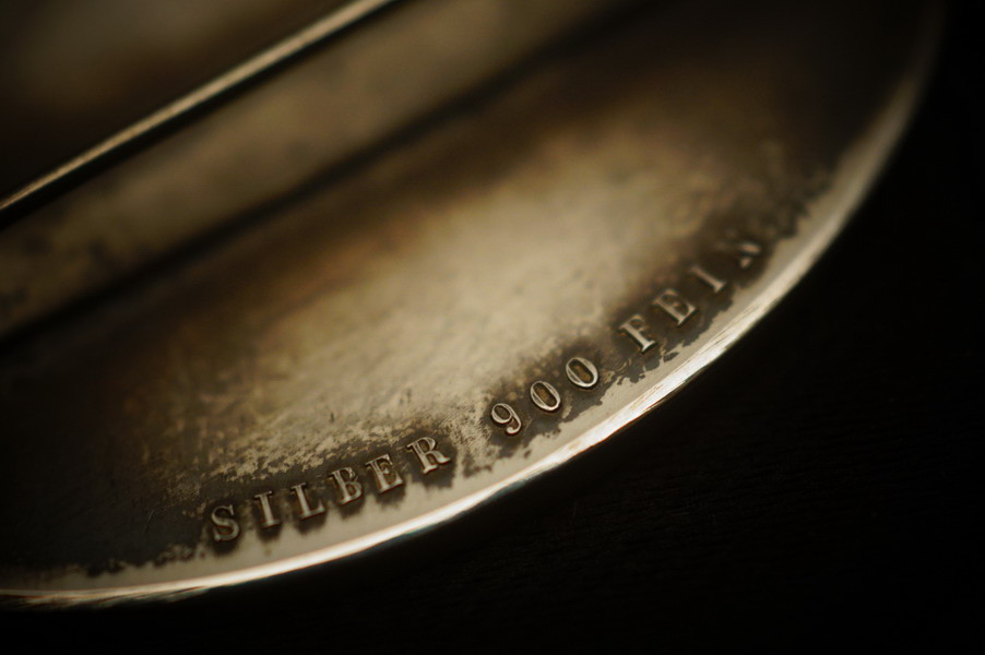 Zustand siehe Bilder. Original. Bilder sind Gegenstand der Beschreibung. Geprägtes Stück aus massiv Silber. Extrem selten und mit Hersteller und dem zusgehörigen Etui !