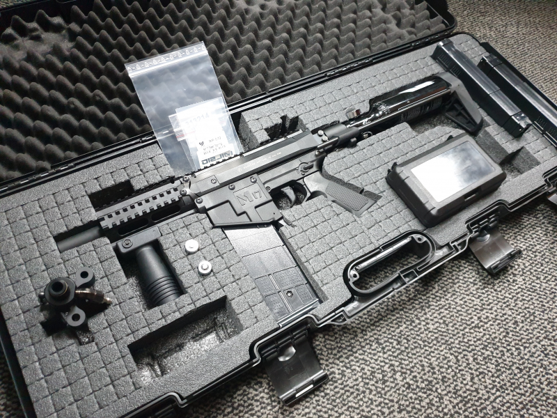 Markierer im Kaliber .68 von Valken/Milsig. Sehr guter gebrauchter Zustand. Funktionierte bis zuletzt tadellos. Kommt im Koffer mit allem Zubehör, das auf den Bildern zu sehen ist (außer die beiden Batterien in Bild #1).