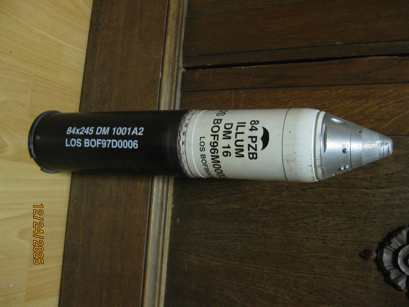 Sehr gut erhaltene 84mm Granate Carl Gustaf mit einem Illum Gefechtsfeld-Beleuchtung-Aufsatz. Gebrauchtware, keine Garantie, kein Umtausch.