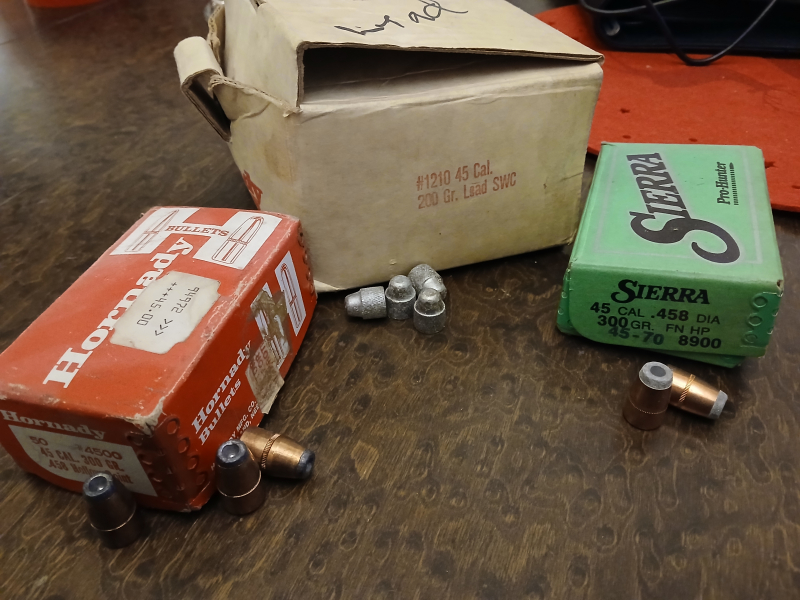Ca. 500 hornady Geschosse 200 gr. Lead Swc. Wie abgebildet. Dazu gibts 40 geschosse hornady 300 gr. In .458 hollow point. . Dazu gibts 30 sierra geschosse in .458 mit 300 gr. FN HP. Alles in cal. 45 . Verkauf von Privat unter Ausschluss der Gewährleistung.